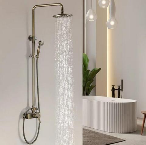 Avrupa tarzı bakır kaliteli antika pirinç bitmiş maruz yağmur banyo musluk duvar duşu musluk bataryası