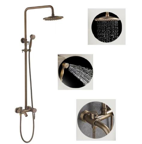 Klasik avrupa tasarım antik pirinç maruz duş seti duvar montaj 2 yollu bronz duş musluklar musluk bataryası banyo için